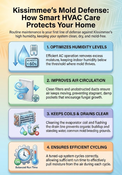 Bottom line: In Kissimmee, HVAC maintenance isn't just about comfort—it's your primary defense against mold. Schedule service before problems start, not after.